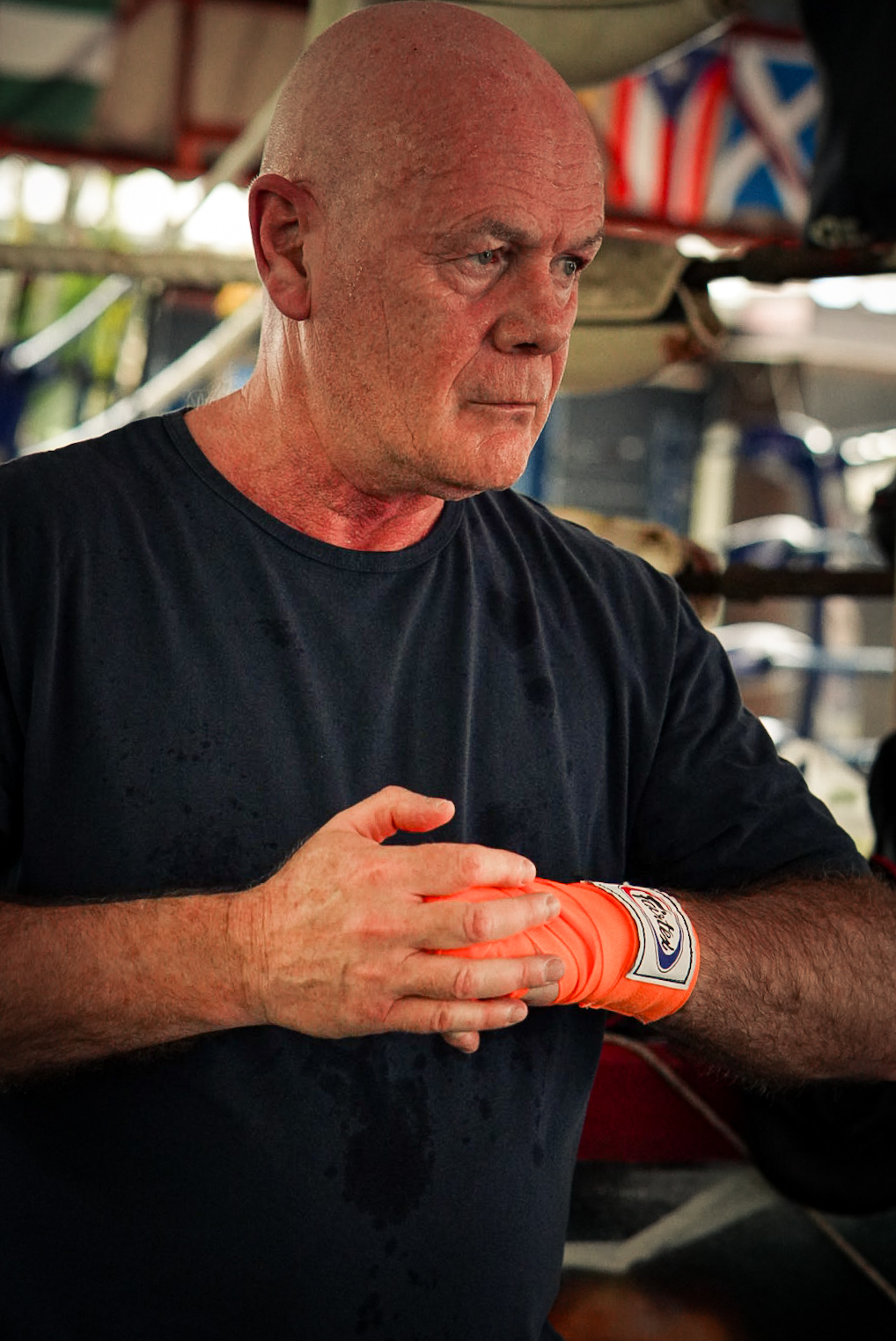 I started on the heavy bag and despite my injury I decided to make the mistake of continuing to kick with my right leg, something I would regret later of course. I looked to my left, and the guy on the next bag resembled Bolo Yeung in his heyday (reference for the older readers there). Inadequate wasn’t the word. I decided to focus on maintaining my extreme sweatiness, excessive red colour and trying to not go full purple just yet. There were pictures being taken!
