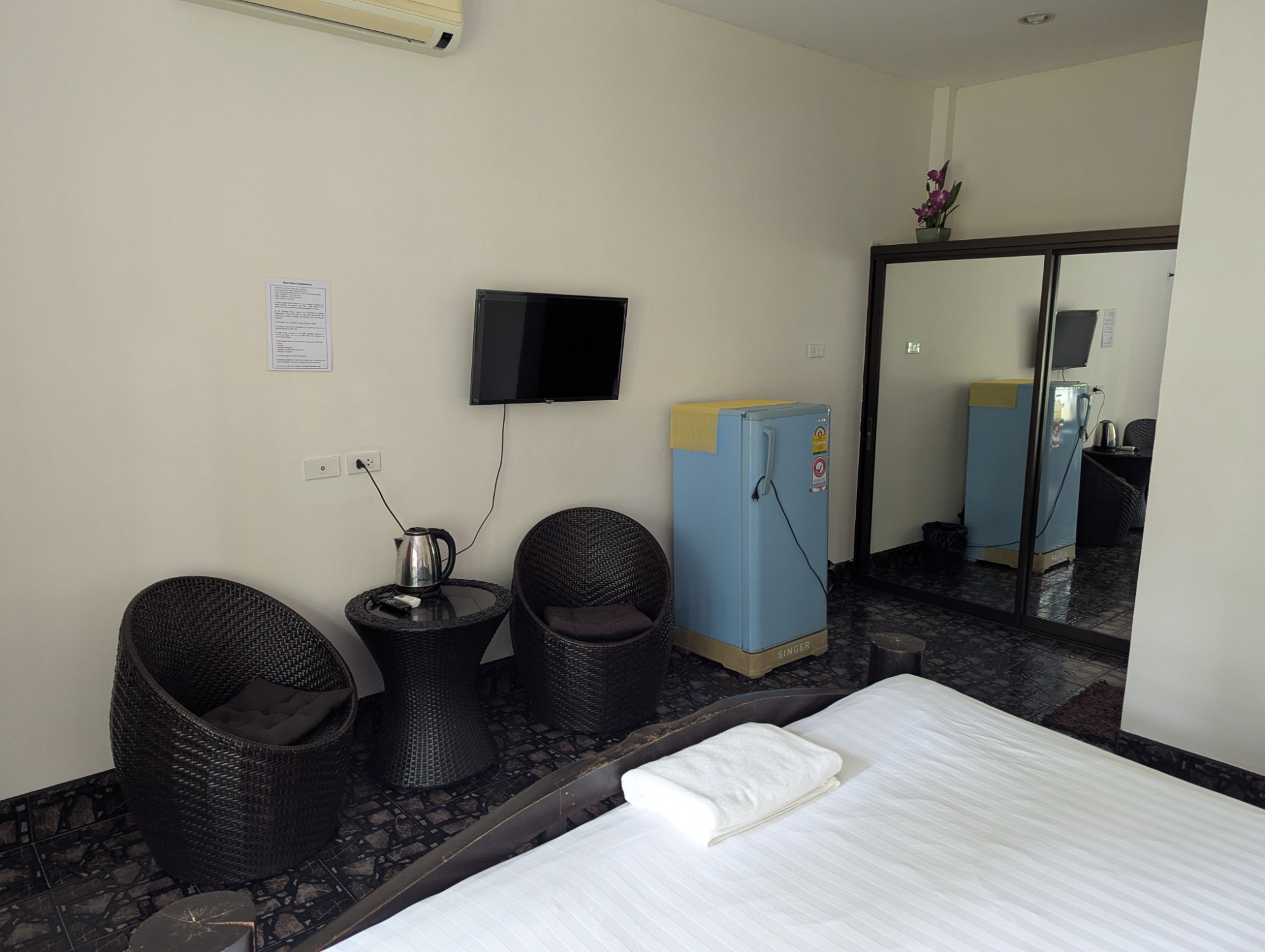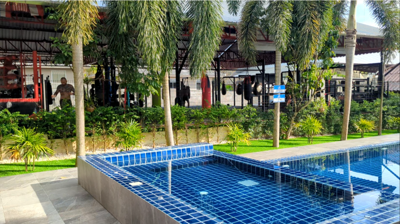 The rooms have aircon, Wi-Fi, TV, safe, Kettle, fridge and on suite shower / toilet (complete with bum gun of course!). These bungalows are probably classed as standard accommodation, but I found the room to be perfect for someone wanting to stay “on the soi”, and it had a very comfortable large bed. You are just one minute from great food, convenience stores, massages etc. The site also has a swimming pool which is so good straight after training. As you are so close to the gym you also get the background soundtrack of Muay Thai pads and bags being hit. These rooms are a very good option if you are training at Dragon.